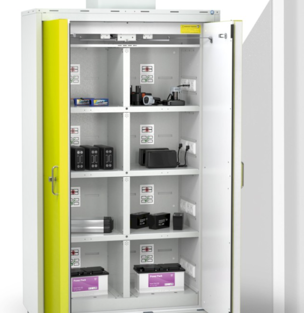 SAFETY STORAGE CABINETS FOR CHARGING AND STORAGE OF LITHIUM-ION-BATTERIES