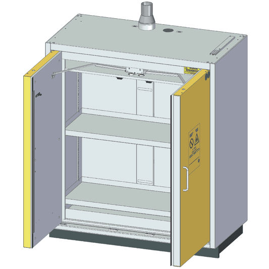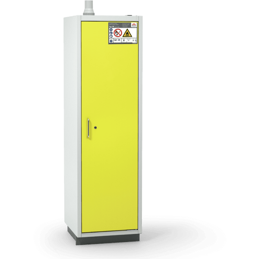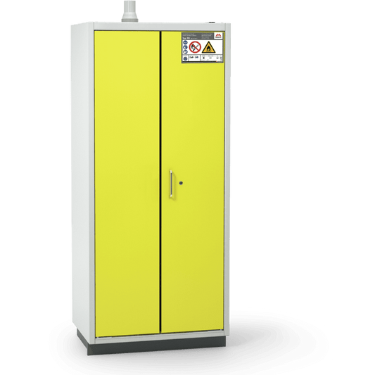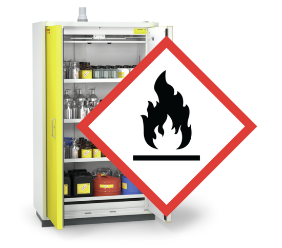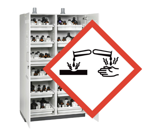 Roughly generalised: flammables are fire-separated, acids and bases are separated and poisons are locked away. In addition, consideration should be given to any other chemicals that need to be kept separate (Guide:Tukes - Handling and storage of dangerous chemicals). In storage facilities, it is important to pay particular attention to adequate ventilation, the correct capacity of drainage basins and earthing. We are happy to help you choose the right storage solutions.