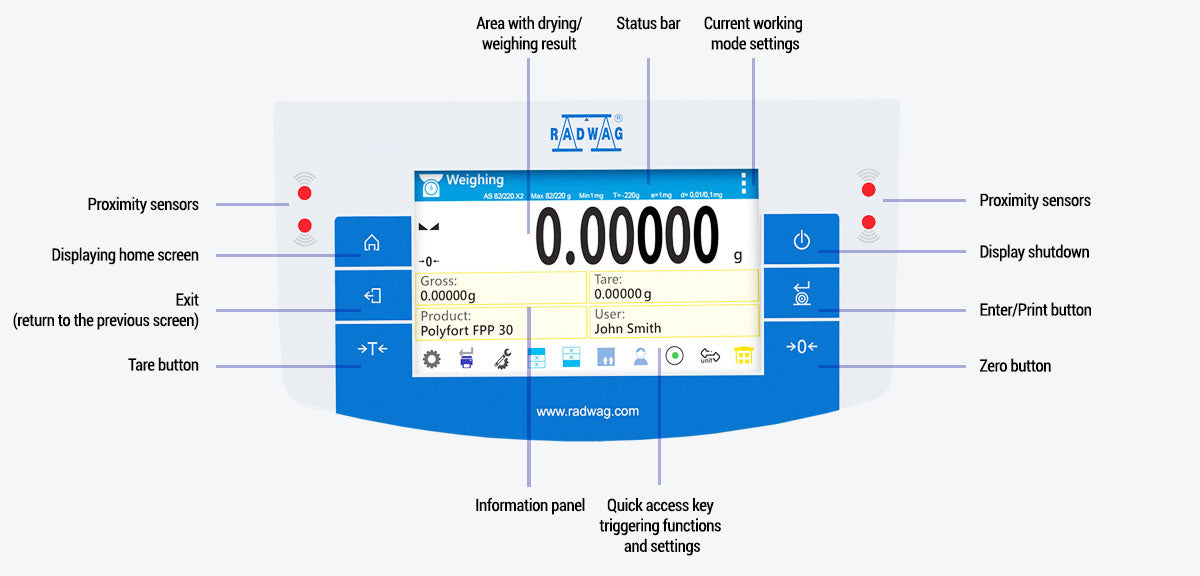 Touch-free operation and programmable sensors facilitate daily work and reduce the range of actions performed during the weighing procedure.