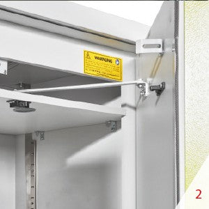 In the event of a fire inside the cabinet, the doors are automatically closed and locked to prevent a backdrafts (smoke gas explosion).