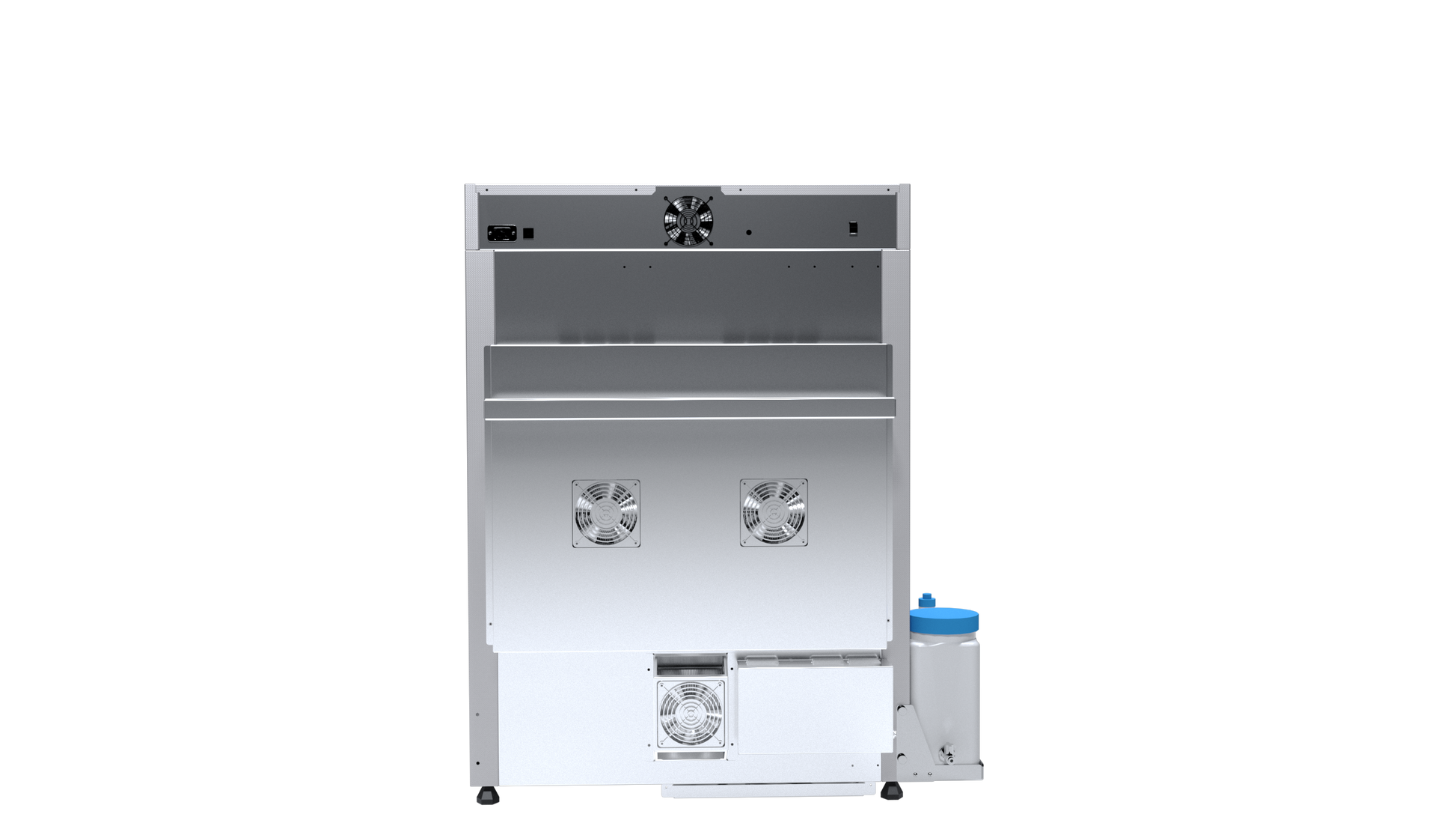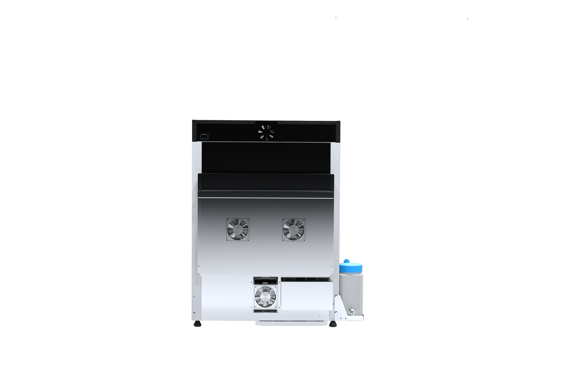 Steam humidifier in the KKP models is an energy-saving solution based on an aluminum heating block and a peristaltic pump controlled by a stepper motor. This humidifier has a very fast heating time and enables the dosing of precisely measured amounts of water. Operation in ECO mode (the block heats up only when it detects the need for dosing moisture to the chamber) saves energy.