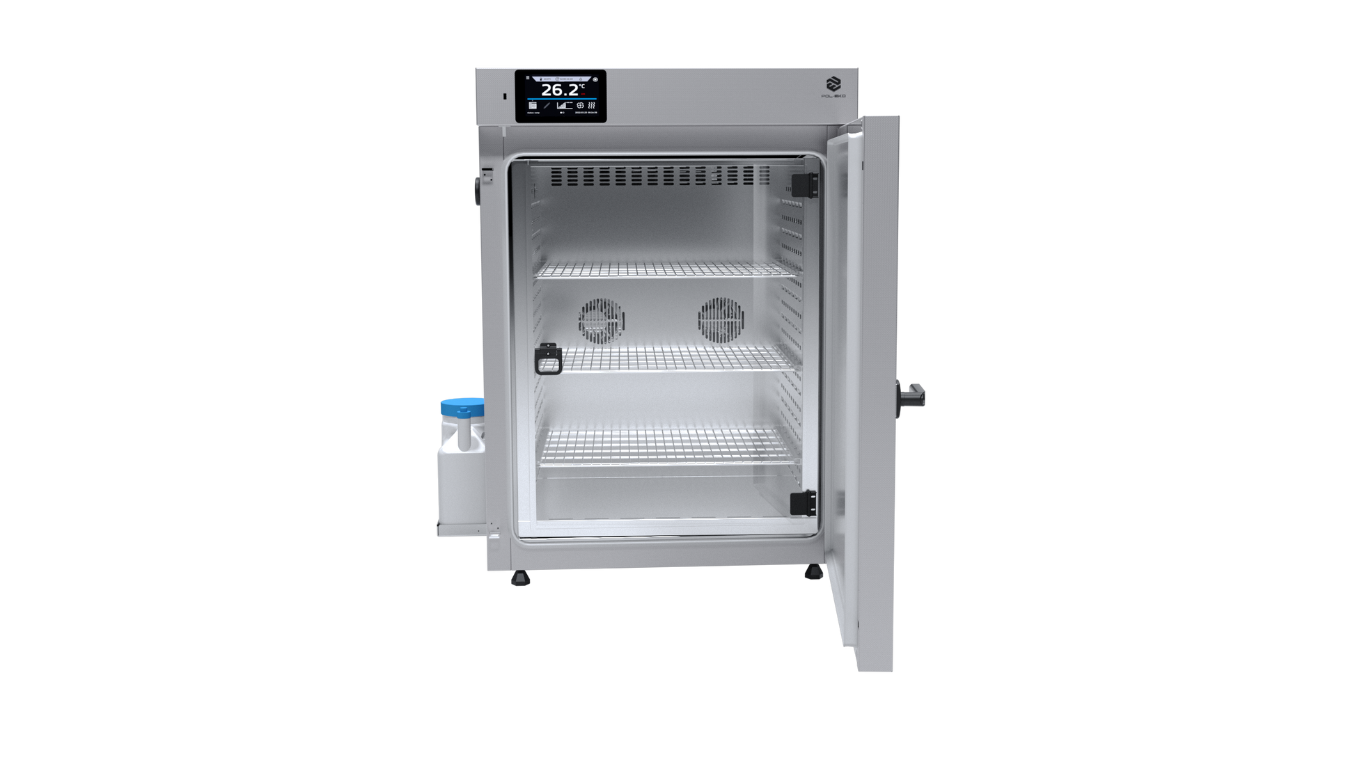 The KKP constant climatic chambers with a steam humidifier do not emit ultrasounds and therefore allow insects breeding (e.g. Drosophila melanogaster). Compared to the KK chambers, they feature an extended temperature and humidity range and can be used for tests of electronics, plastic or building materials.