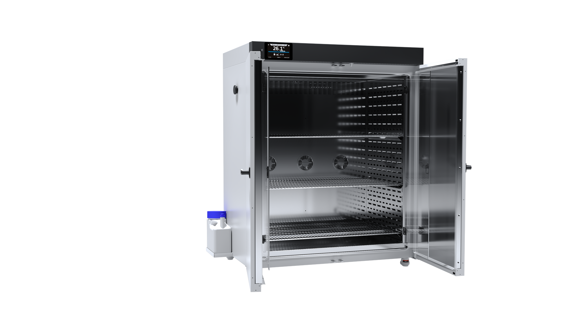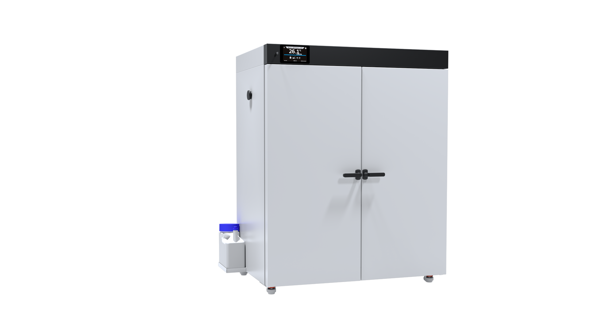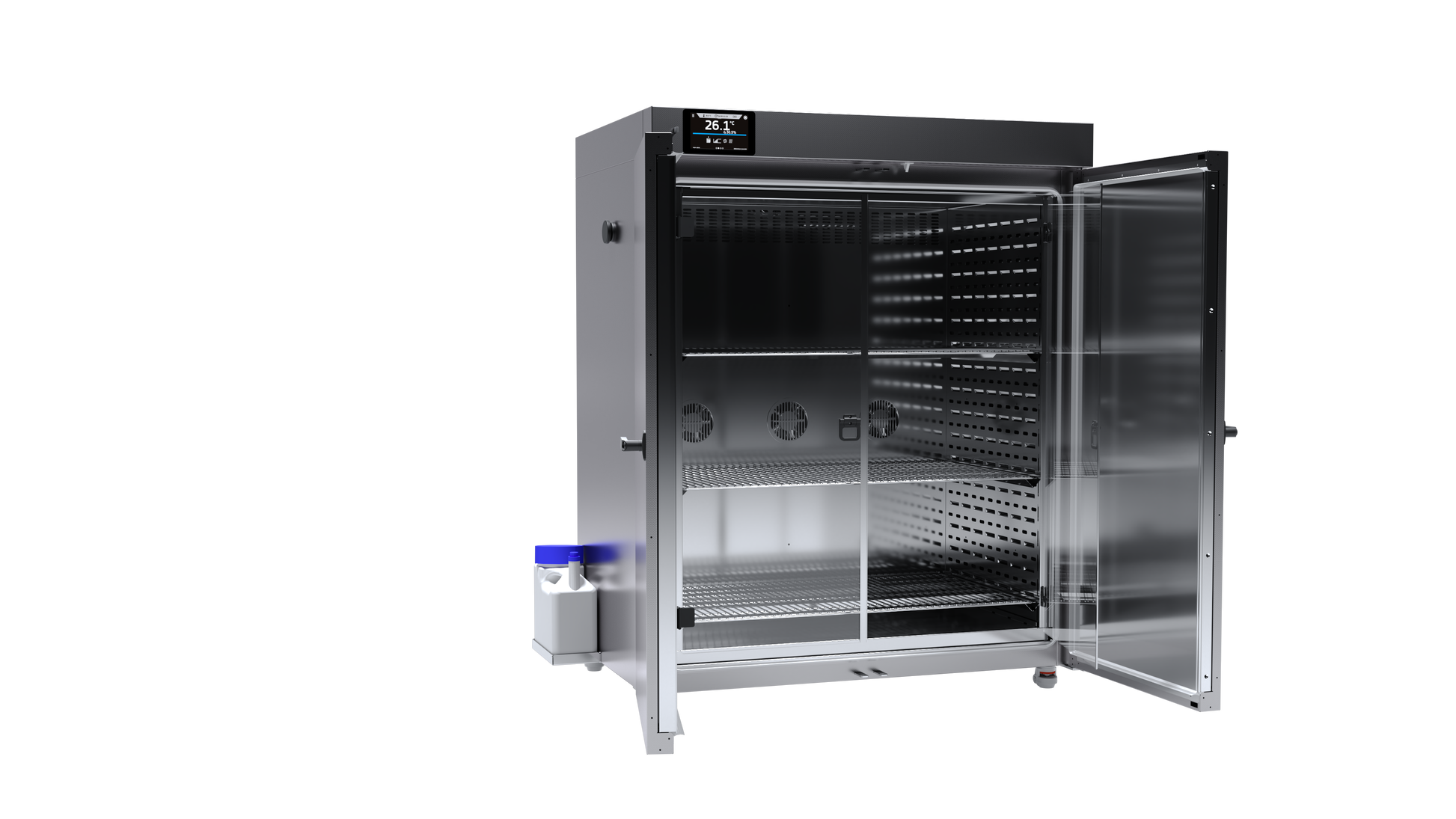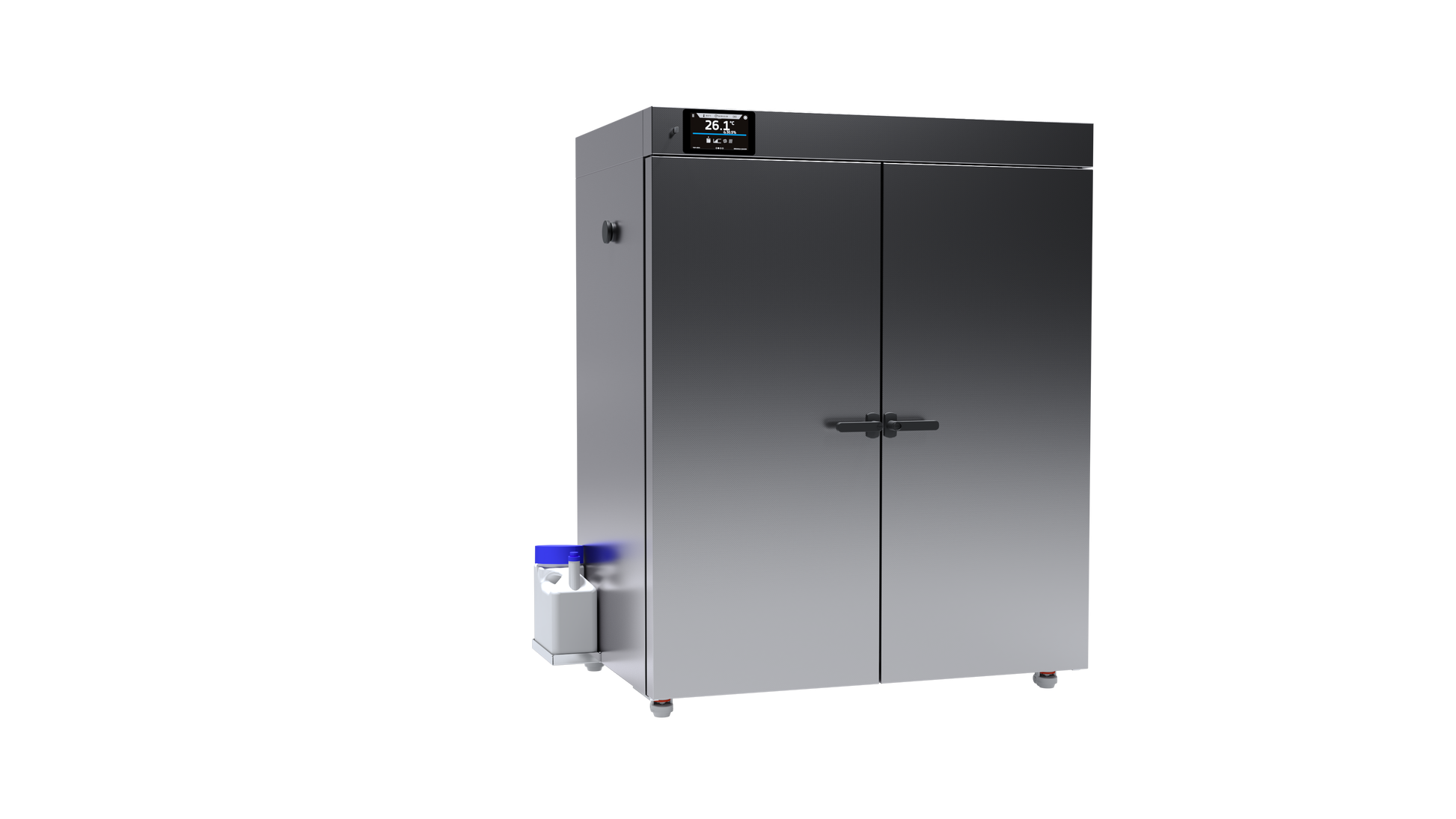 The KKP constant climatic chambers with a steam humidifier do not emit ultrasounds and therefore allow insects breeding (e.g. Drosophila melanogaster). Compared to the KK chambers, they feature an extended temperature and humidity range and can be used for tests of electronics, plastic or building materials.