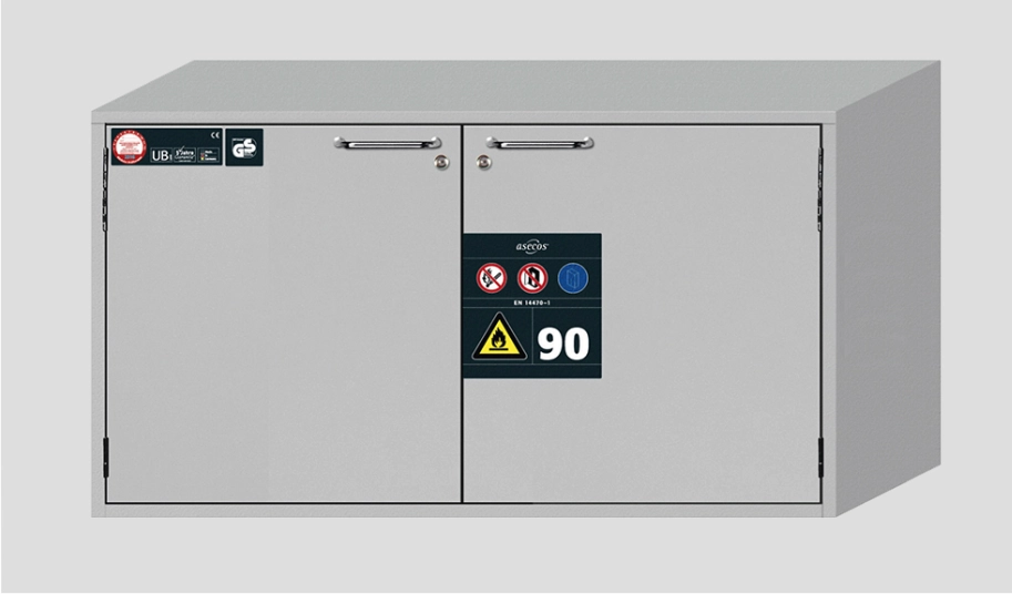 ASECOS underbench cabinet UB 90-type, made of galvanized powder-coated steel RAL7035, fire resistance up to 90 minutes. Tested according EN 14470-1 type 90.