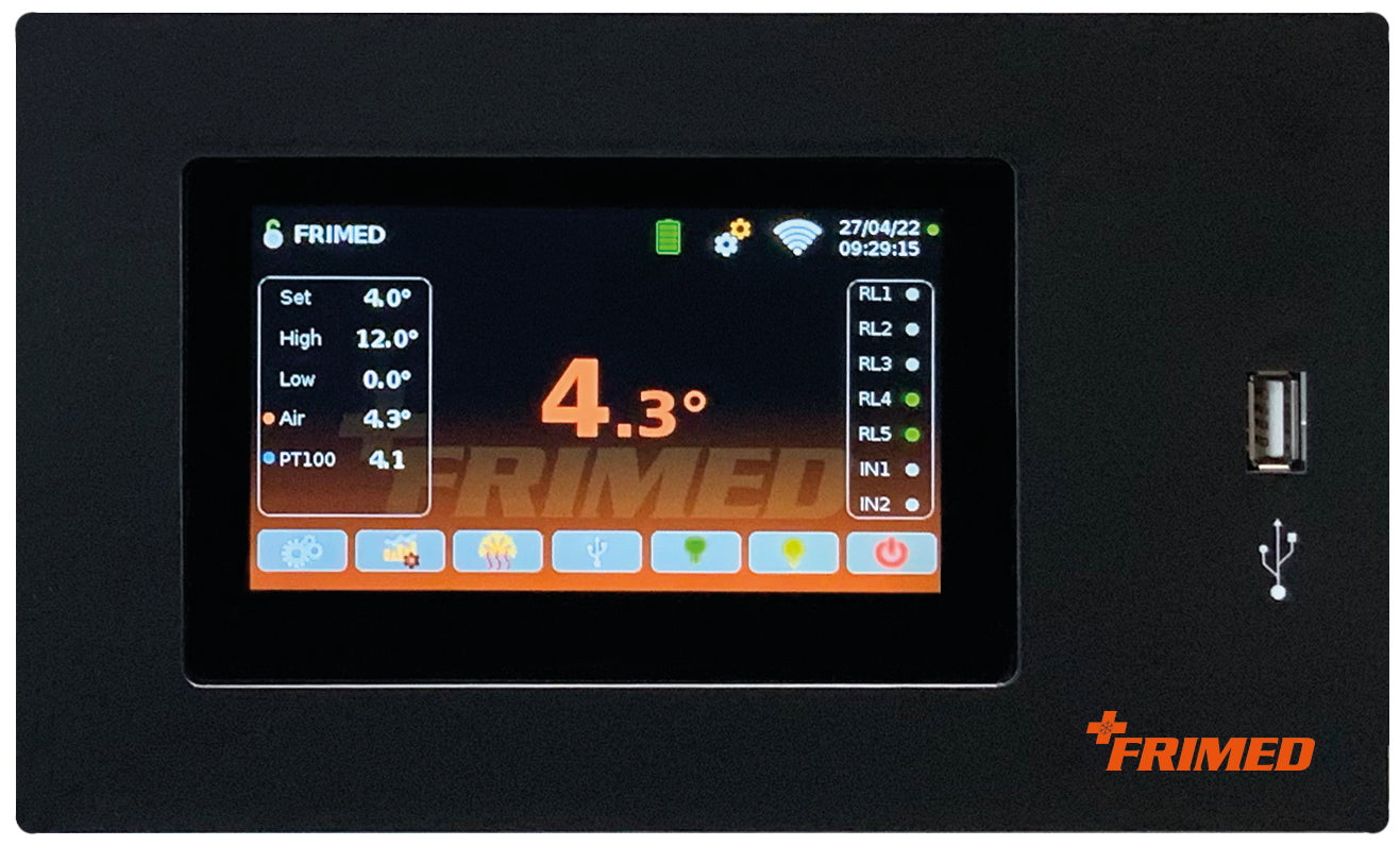 Microprocessor‑ohjattu paneeli. Näyttö 0,1 °C tarkkuudella. Lämpötilan valvonta riippumattomilla antureilla. Kosketusnäyttöversiossa reaaliaikainen lämpötilakaavio. Antureiden digitaalinen kalibrointi. Visuaaliset ja äänimerkkihälytykset korkealle/alhaiselle lämpötilalle (riippumattoman anturin kautta), avoimelle ovelle, kondensaattorin tehokkuudelle, viallisille antureille sekä sähkökatkoksille. Sähkökatkosten ja hälytysten tallennus varmistusakulla; näkyy viimeisimpien hälytysten muisti näytöllä.