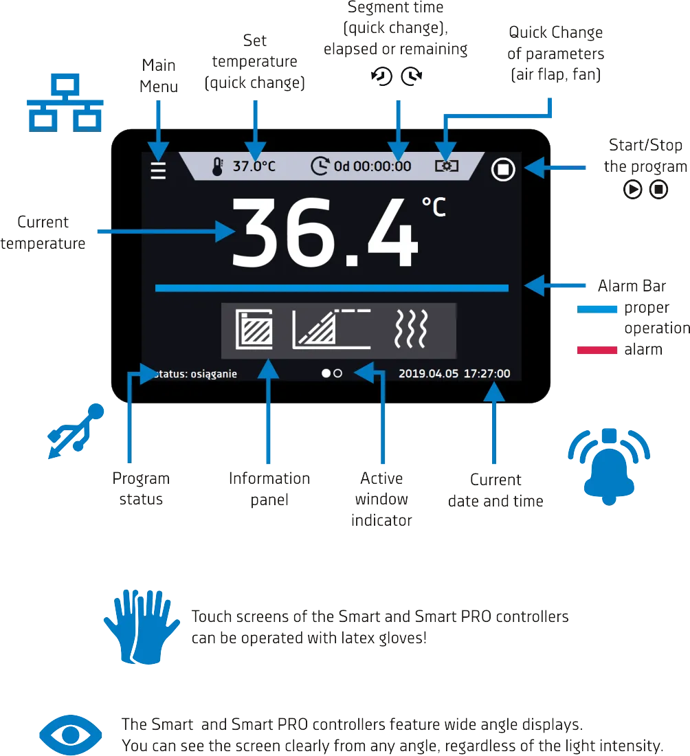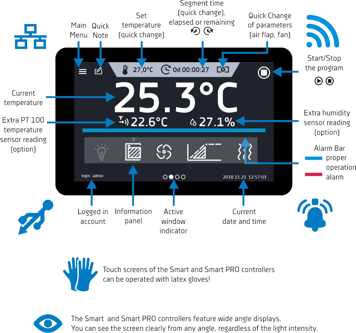 Upouudet SMART PRO kontrollerit ovat asennettuina KK-olosuhdekaappeihin, IL-jäähdyttäviin inkubaattoreihin, SL-lämpökaappeihin, CL-laboratorioinkubaattoreihin sekä ST-jäähdyttäviin inkubaattoreihin, CHL-laboratoriojääkaappiin, ZL-laboratoriopakastimiin ja ZLN-UT syväjääpakastimiin.