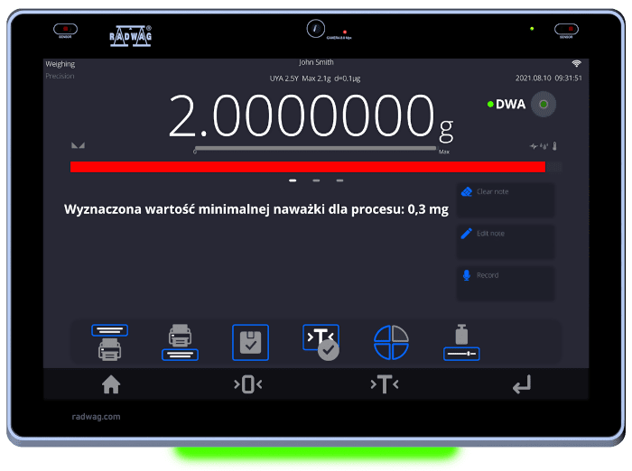 RADWAG PS 5Y on tarkkuusvaaka, joka mittaa painon tarkasti, suorittaa digitaalisen tarkastuksen sekä tukee äänikomentoja ja valoviestintää. ELLIPSIS-sarja yhdistää mittaustarkkuuden ja modernin käyttöliittymän tehtäviin, joissa tarvitaan sekä numeerista luotettavuutta että reaaliaikaista tilaviestintää.
